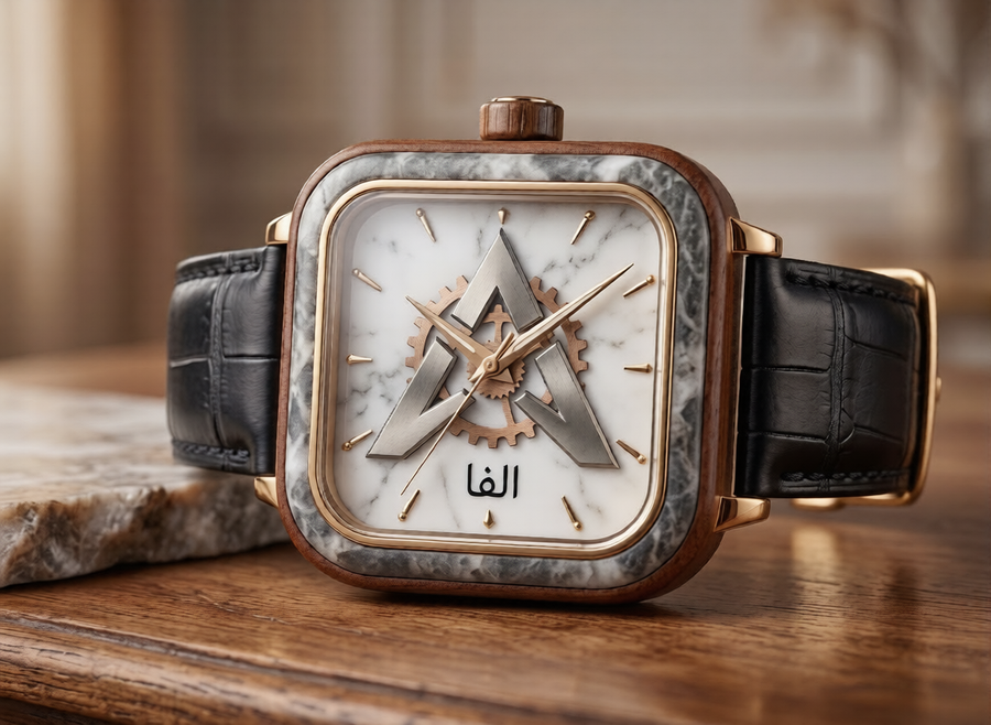 عبّر عن تميزك في كل مناسبة. سواء كنت في اجتماع عمل رسمي، في مكتبة فاخرة (كما هو موضح في الخلفية)، أو في مناسبة اجتماعية راقية، فإن ساعة "ألفا" هي الخيار الأمثل لإكمال مظهرك بقطعة حوارية فريدة تجمع بين دفء الطبيعة ودقة الهندسة.